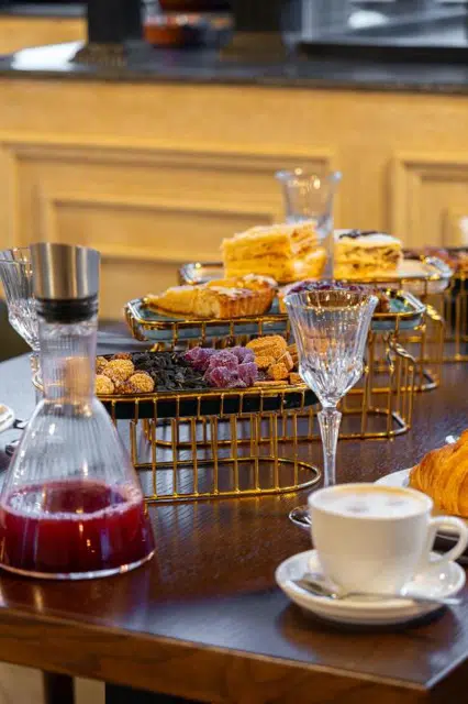 aromatic coffee, tea, desserts